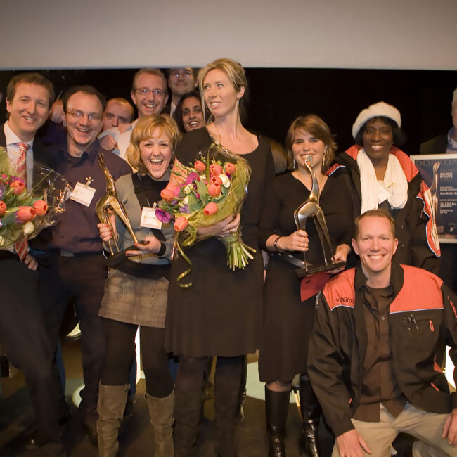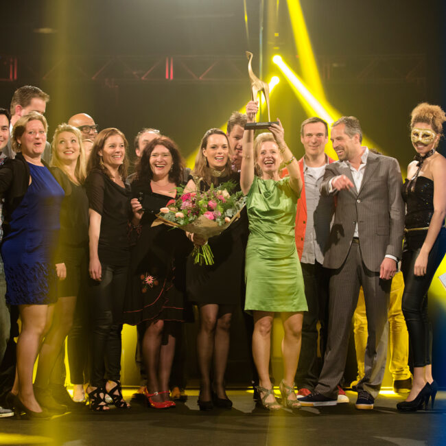 In de Heerlickheid van Ermelo overhandigt Bert de Vries voor het laatst als juryvoorzitter de Gouden Giraffe trofees. Hij geeft het stokje over aan een nieuwe generatie. Winnaar is Art & Show Events met het ‘Verwenplein in het land van de Klant’ voor Nuon Divisie Consumenten. De Zilveren Giraffe is voor De Cultuurfabriek die voor PinkRoccad ‘After the Goldrush’ organiseerde. De bronzen variant gaat me met Intemco Event Management voor ‘Iets anders bij de borrel’ in opdracht van Leerdammer Company.